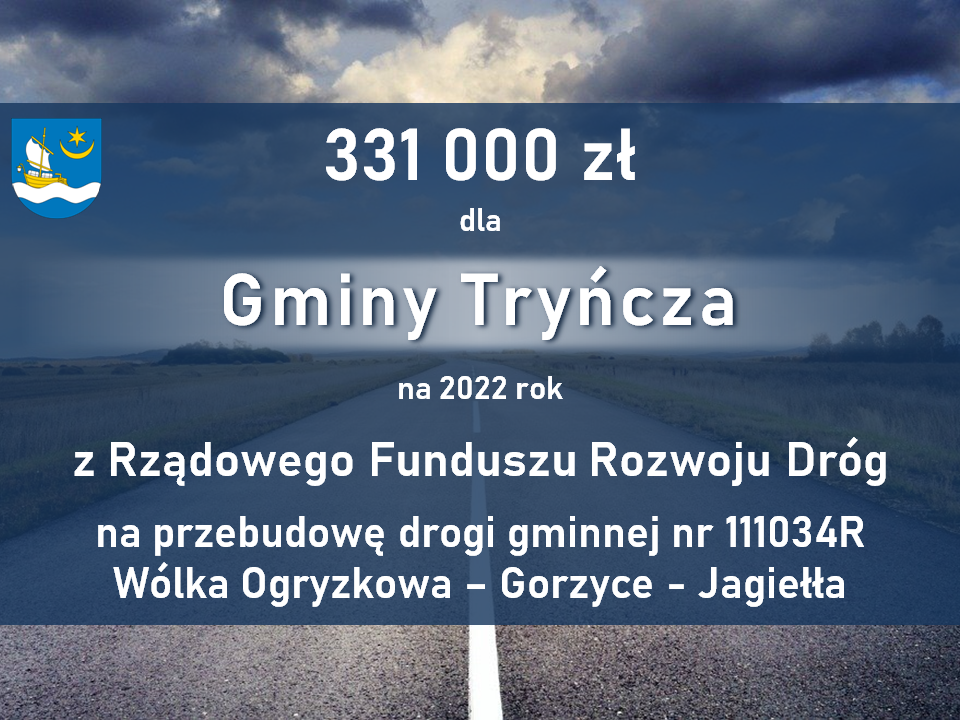 Obrazek Gmina Tryńcza pozyskała dofinansowanie w wysokości 331 tys. zł z Rządowego Funduszu Rozwoju Dróg na przebudowę drogi gminnej nr 111034R, Wólka Ogryzkowa - Gorzyce - Jagiełła... więcej