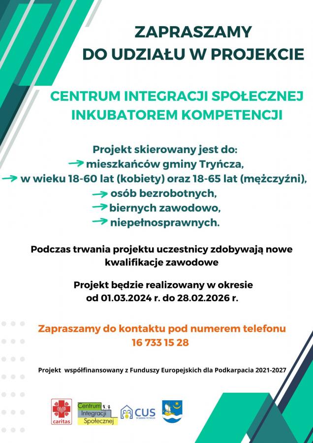 Obrazek Zapraszamy do udziału w projekcie Centrum Integracji Społecznej Inkubatorem Kompetencji więcej