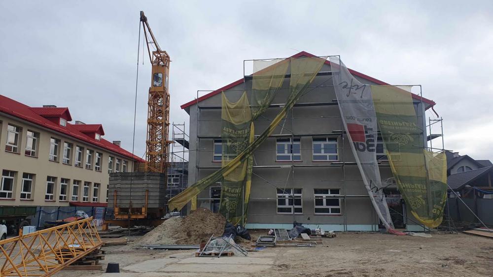 Obrazek Dobiegają końca prace budowlane w ramach I etapu budowy nowego skrzydła Szkoły Podstawowej w Gniewczynie Łańcuckiej
