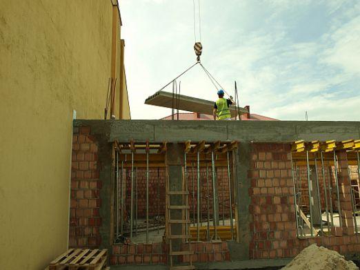 Trwają prace przy budowie obiektu wielofunkcyjnego przy Zespole Szkół w Tryńczy, realizowane w ramach projektu „Podniesienie jakości i warunków kształcenia w Zespołach Szkół na terenie gminy...