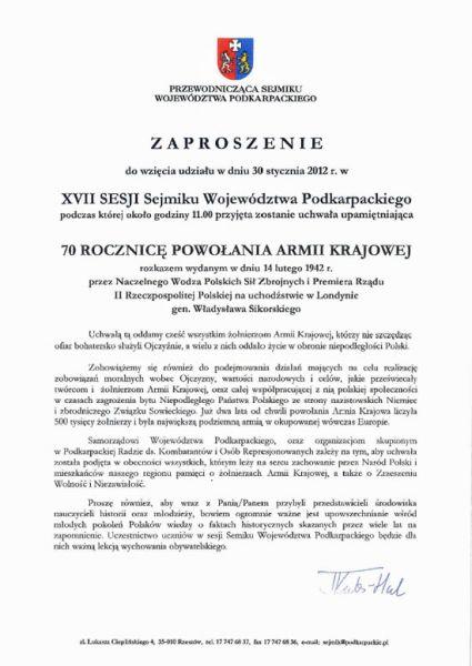 Zaproszenie do wzięcia udziału w XVII Sesji Sejmiku Województwa Podkarpackiego...