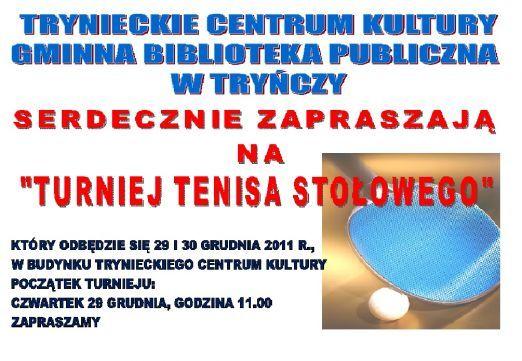 Turniej Tenisa Stołowego odbędzie się 29 i 30 grudnia 2011 r. w budynku Trynieckiego Centrum Kultury.