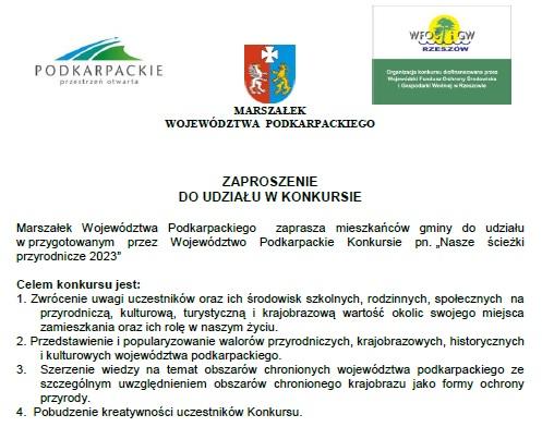 Obrazek Marszałek Województwa Podkarpackiego zaprasza mieszkańców gminy do udziału w przygotowanym przez Województwo Podkarpackie Konkursie pn. „Nasze ścieżki przyrodnicze 2023" więcej