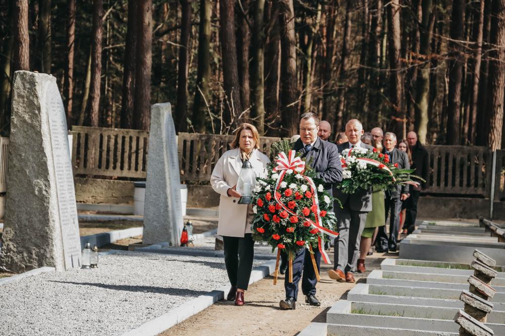 Obrazek W przeddzień obchodów Narodowego Dnia Pamięci Polaków ratujących Żydów pod okupacją niemiecką, na cmentarzu wojennym w Jagielle (Niechciałki), delegacje złożyły wiązanki kwiatów i znicze....
