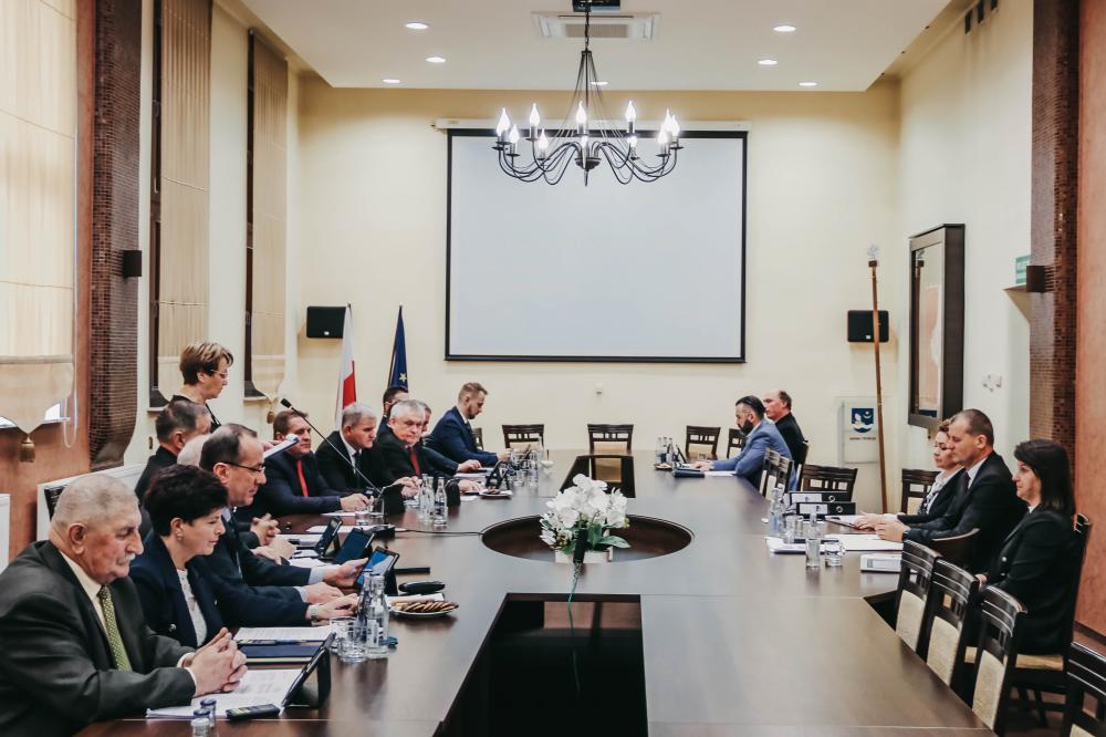Obrazek W Urzędzie Marszałkowskim Województwa Podkarpackiego w Rzeszowie w obecności Wicemarszałka Piotra Pilcha, wójt Ryszard Jędruch podpisał umowę o dofinansowanie inwestycji ...