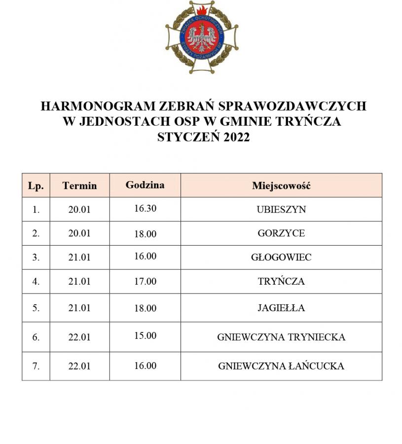 Z początkiem każdego roku kalendarzowego oraz opracowanym harmonogramem przez członków Zarządu Oddziału Gminnego ZOSP RP w Tryńczy rozpoczęły się walne zebrania sprawozdawcze w jednostkach Ochotniczych Straży Pożarnych na terenie naszej gminy...