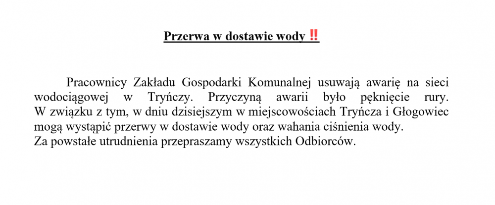 Obrazek Pracownicy Zakładu Gospodarki Komunalnej usuwają awarię na sieci wodociągowej w Tryńczy... więcej