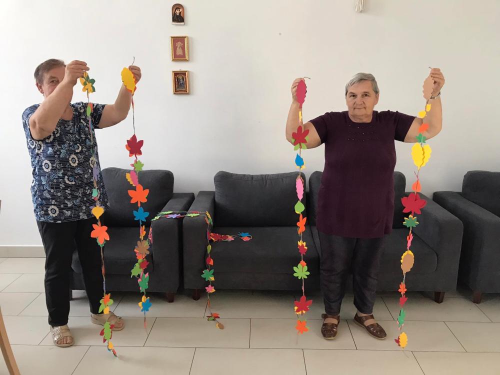 Uczestnicy Klub Senior+ w Jagielle w bieżącym tygodniu podczas warsztatów pracy twórczej wykonywali kolorowe dekoracje okien –jesienne girlandy z liści.
