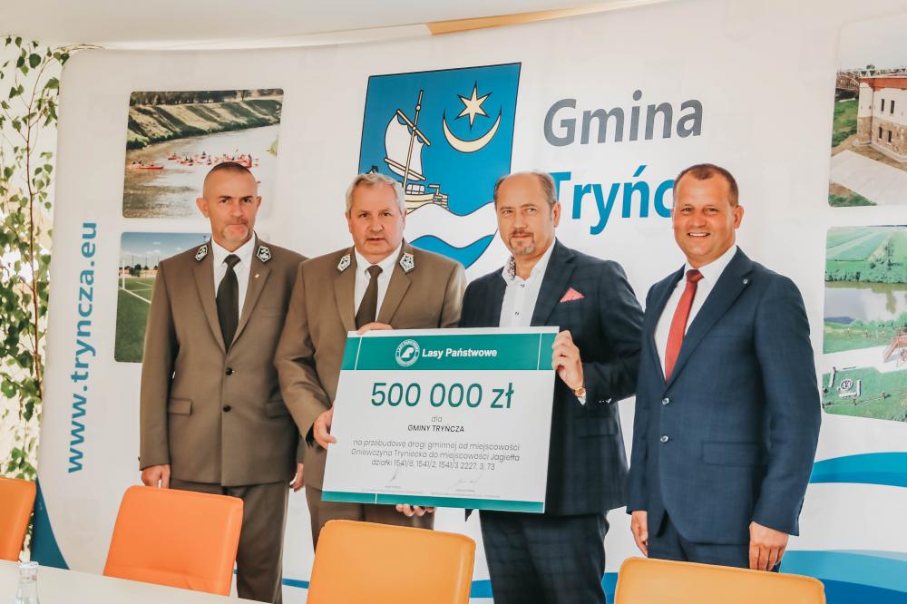 Mieliśmy dziś przyjemność gościć w Urzędzie Gminy Tryńcza Senatora Mieczysława Golbę oraz dyrektora Generalnej Dyrekcji Lasów Państwowych w Krośnie Marka Mareckiego i Nadleśniczego Janusza Starzaka, którzy na ręce wójta Ryszarda Jędrucha oraz radnych przekazali promesę o wartości 500 tys. zł na przebudowę drogi gminnej...