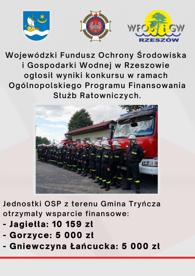 Obrazek Wojewódzki Fundusz Ochrony Środowiska i Gospodarki Wodnej w Rzeszowie ogłosił wyniki konkursu w ramach Ogólnopolskiego Programu Finansowania Służb Ratowniczych. więcej