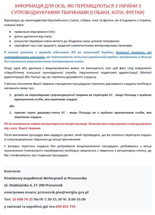 Obrazek Zgodnie z przepisami Unii Europejskiej zwierzęta z gatunku psy, koty, fretki wjeżdżające z Ukrainy muszą posiadać: więcej