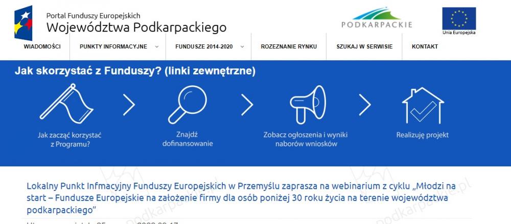 Obrazek Lokalny Punkt Informacyjny Funduszy Europejskich w Przemyślu zaprasza na webinarium z cyklu „Młodzi na start – Fundusze Europejskie na założenie firmy dla osób poniżej 30 roku życia na terenie województwa podkarpackiego”. więcej