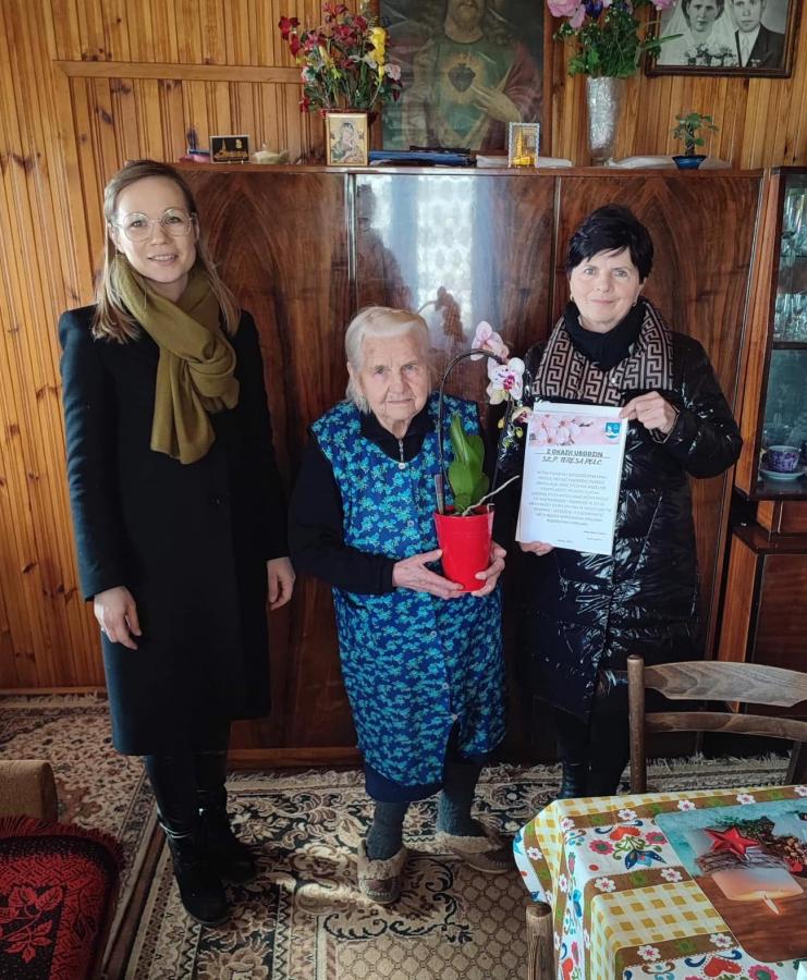 Obrazek Kontynuując tradycję pracownicy Centrum Usług Społecznych w Gminie Tryńcza wraz z Radną Rady Gminy Tryńcza Panią Danutą Muchą odwiedzili dzisiaj seniorów, którzy obchodzili swoje jubileuszowe urodziny.