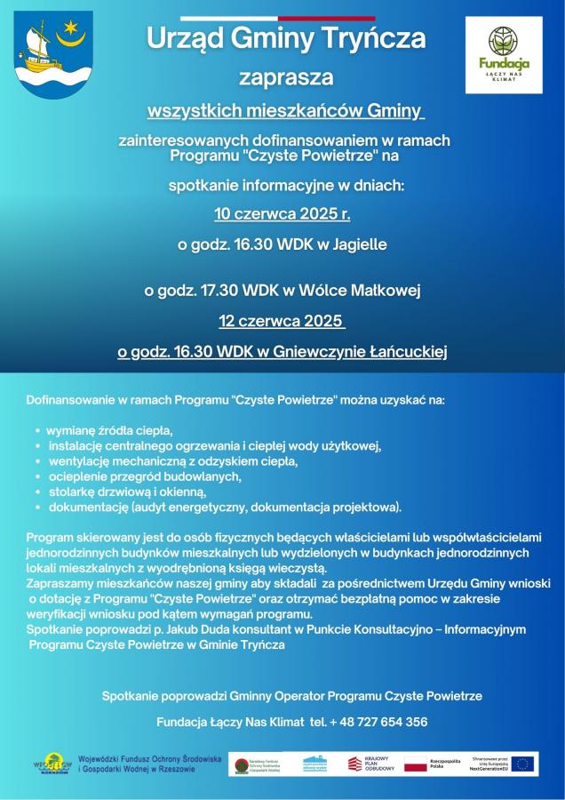 Obrazek Urząd Gminy Tryńcza zaprasza wszystkich mieszkańców Gminy zainteresowanych dofinansowaniem w ramach Programu Czyste Powietrze więcej