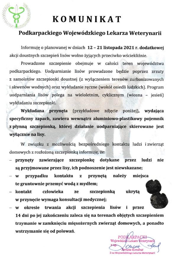 Obrazek Komunikat Podkarpackiego Wojewódzkiego Lekarza Weterynarii więcej