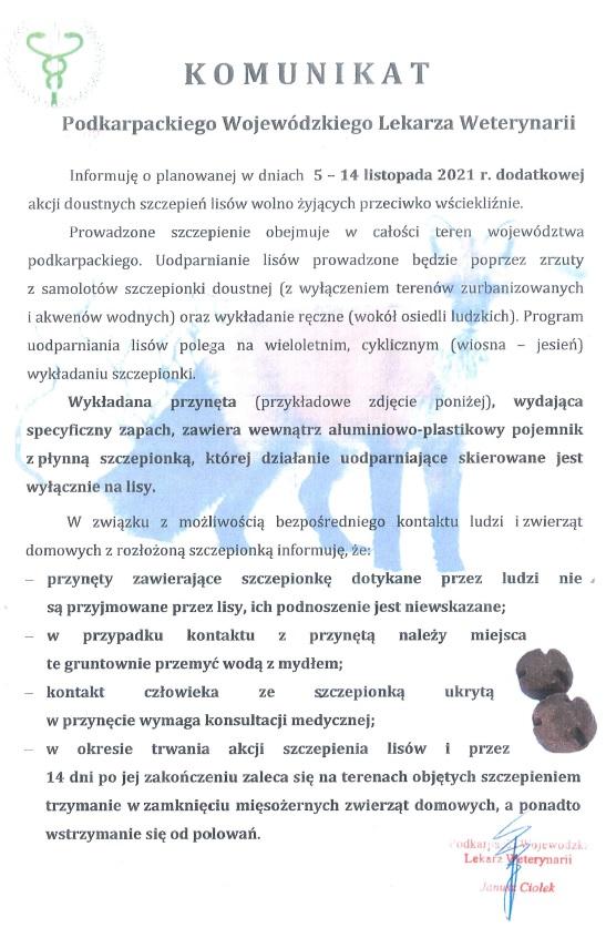 Obrazek Komunikat Podkarpackiego Wojewódzkiego Lekarza Weterynarii więcej