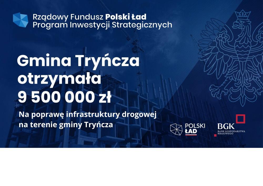Obrazek Otrzymaliśmy 9 500 000 zł na poprawę infrastruktury drogowej na terenie Gminy Tryńcza w ramach Rządowego Funduszu Polski Ład Program Inwestycji Strategicznych! więcej