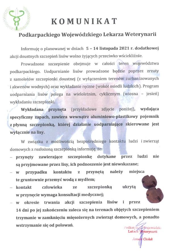 Obrazek KOMUNIKAT PODKARPACKIEGO WOJEWÓDZKIEGO LEKARZA WETERYNARII więcej