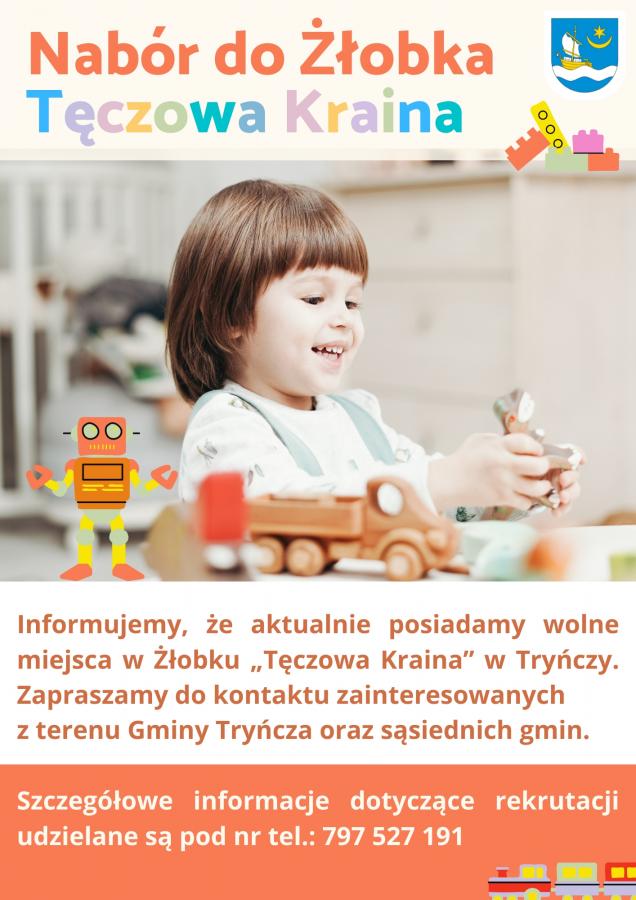 Obrazek Informujemy, że aktualnie posiadamy wolne miejsca w Żłobku "Tęczowa Kraina" w Tryńczy