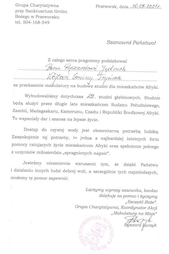 Obrazek Podziękowanie od Grupy Charytatywnej przy Sanktuarium Grobu Bożego w Przeworsku więcej