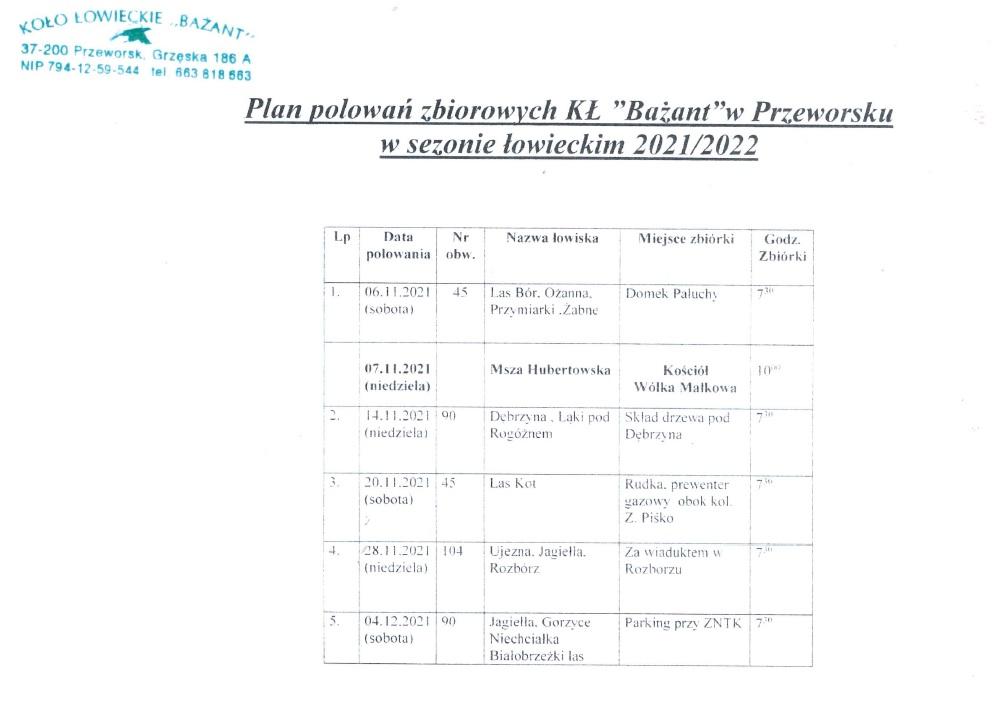 Obrazek PLAN POLOWAŃ KOŁA ŁOWIECKIEGO "BAŻANT" więcej