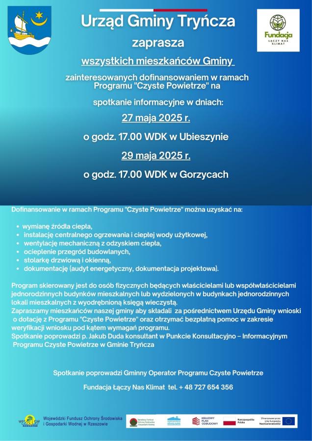 Obrazek Urzad Gminy Tryńcza zaprasza wszystkich mieszkańców zainteresowanych dofinansowaniem w ramach Programu Czyste Powietrze więcej