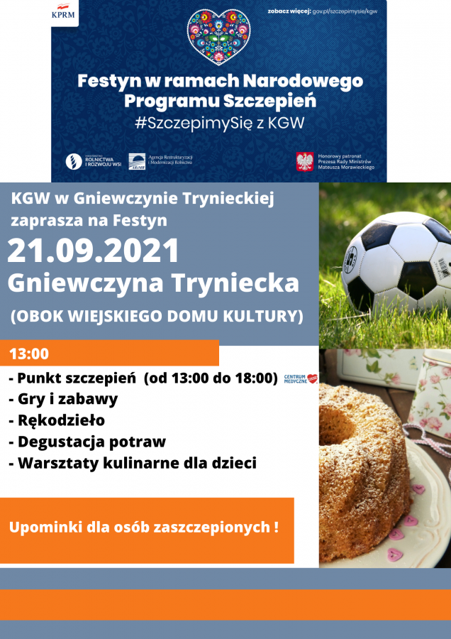 Obrazek KGW w Gniewczynie Trynieckiej zaprasza  na Festyn zorganizowany w ramach Narodowego Programu Szczepień więcej
