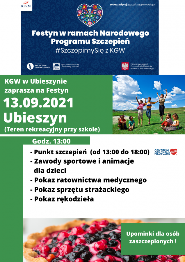 Obrazek KGW w Ubieszynie zaprasza na Festyn w ramach Narodowego Programu Szczepień... więcej