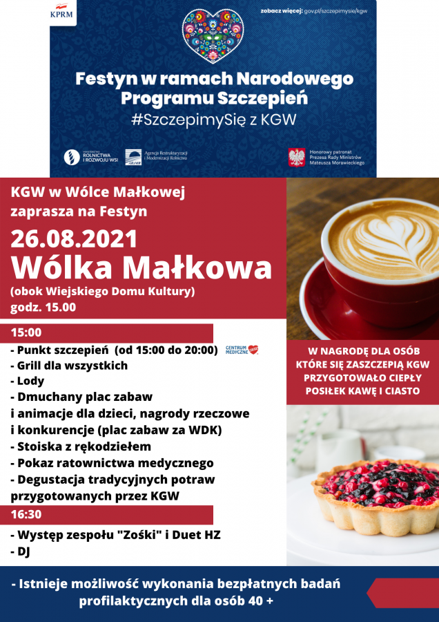 Obrazek Zapraszamy na Festyn w Wólce Młkowej w ramach Narodowego Programu Szczepień... więcej