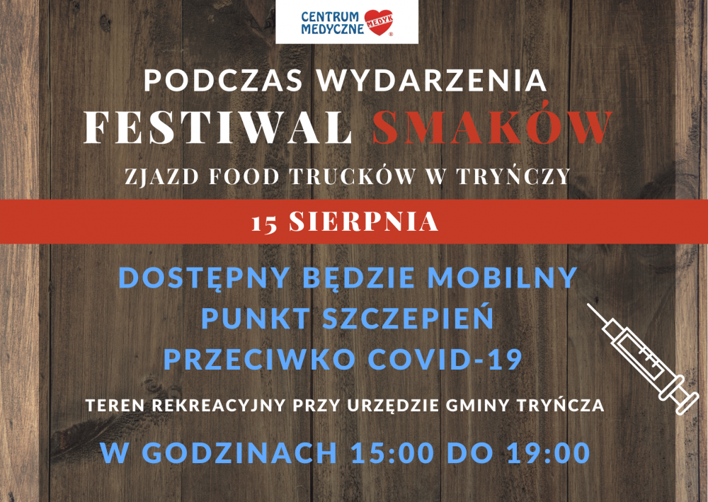 Obrazek Podczas wydarzenia Festiwal Smaków - Zjazd Food Trucków w Tryńczy dostępny będzie mobilny punkt szczepień przeciwko COVID-19 więcej