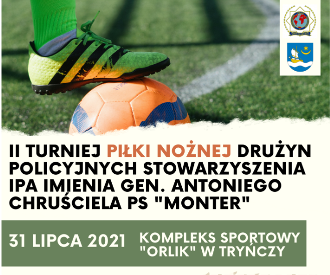Obrazek Zapraszamy na II turniej Piłki Nożnej Drużyn Policyjnych Stowarzyszenia IPA Imienia Gen. Antoniego Chruściela ps. "Monter" - 31 lipca na kompleksie sportowym "Orlik" w Tryńczy więcej