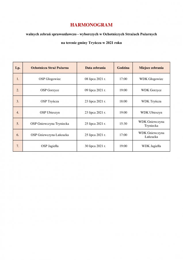 Obrazek Harmonogram walnych zebrań sprawozdawczo - wyborczych w Ochotniczych Strażach Pożarnych