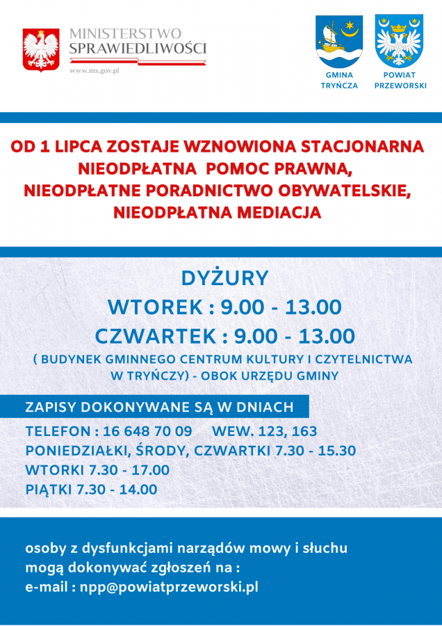 Obrazek ​Od 1 Lipca zostaje wznowiona stacjonarna Nieodpłatna  pomoc prawna,