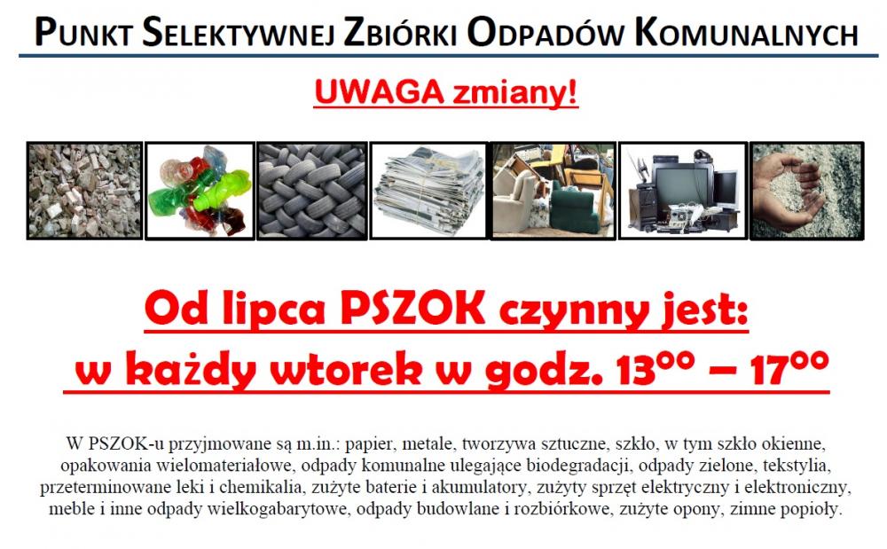 Obrazek Zmiana dni i godzin otwarcia PSZOK! Od lipca PSZOK czynny jest w każdy wtorek w godz. 13:00 – 17:00 więcej