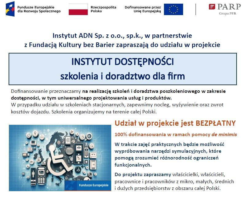 Obrazek Zapraszają na spotkanie Informacyjno-promocyjne Instytut Dostępności – szkolenia i doradztwo dla firm więcej