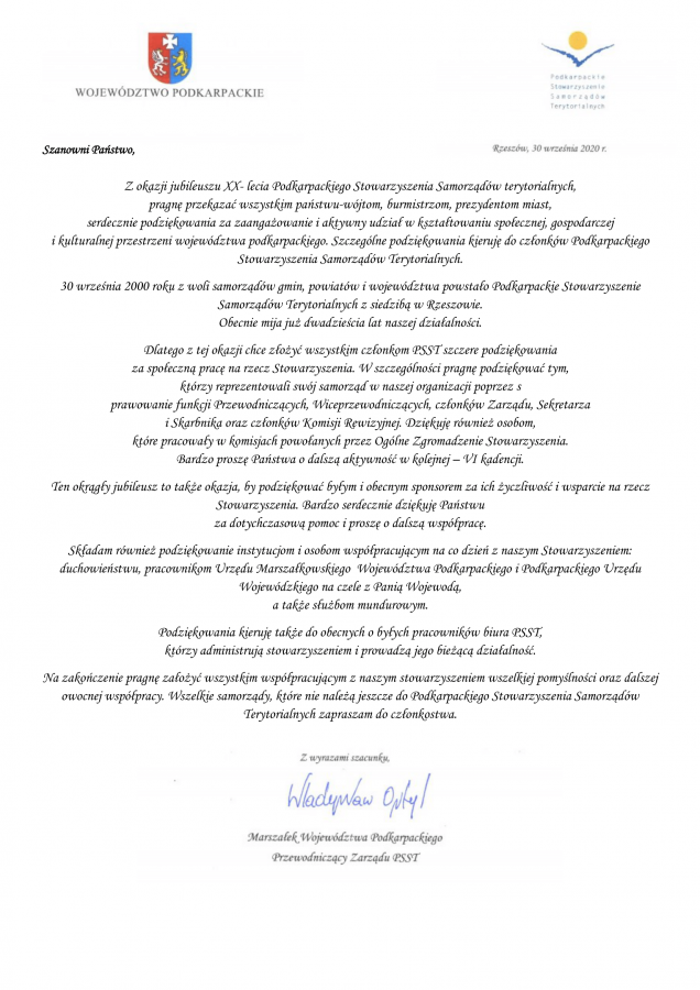 Obrazek Podziękowanie od Marszałka Województwa Podkarpackiego... więcej