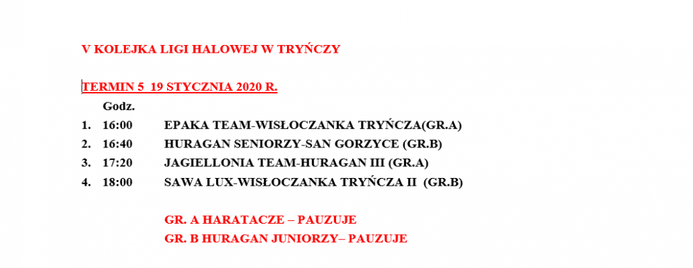 Obrazek Serdecznie zapraszamy na V kolejkę Ligi Halowej w Tryńczy - 19 stycznia 2020 r. godz. 16:00 więcej