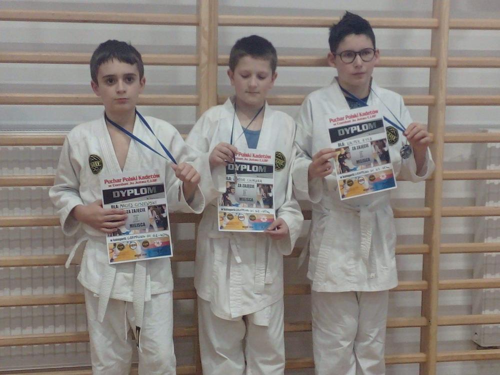 Obrazek 7.12.2019 r. zawodnicy klubu  Combat Ju Jutsu  PEDRO w Tryńczy - Maciej Ciszewski,  Wiktor Chmura oraz Kacper Ryfa, wzięli udział w Pucharze Polski Kadetów Ju-Jutsu  Federacji CJJIF w Mielcu.