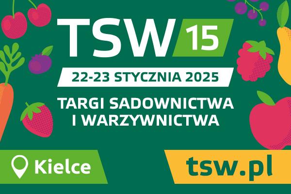 Szanowni Państwo, z przyjemnością zapraszamy na jubileuszową, 15. edycję Targów Sadownictwa i Warzywnictwa TSW 2025, największej imprezy branżowej w Europie Środkowo-Wschodniej,