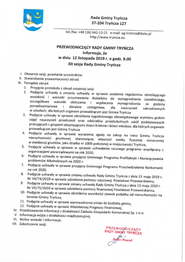 Obrazek Przewodniczący Rady Gminy Tryńcza informuje, że 12 listopada br. o godz. 8:00 odbędzie się XII Sesja Rady Gminy Tryńcza.. więcej