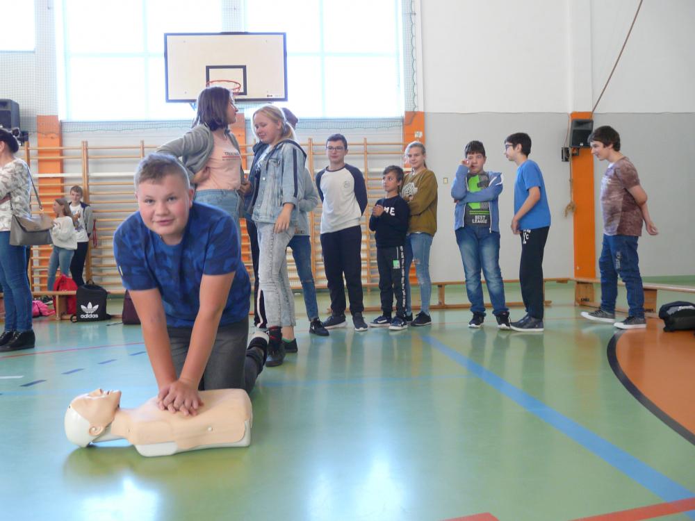 Obrazek 16 października b.r. w ramach obchodów Europejskiego Dnia Przywracania Czynności Serca, Szkoła Podstawowa w Gniewczynie Łańcuckiej po raz trzeci brała udział w organizowanej przez Wielką Orkiestrę Świątecznej Pomocy ogólnopolskiej akcji bicia rekordu w jednoczesnym prowadzeniu resuscytacji krążeniowo-oddechowej przez jak największą liczbę osób..