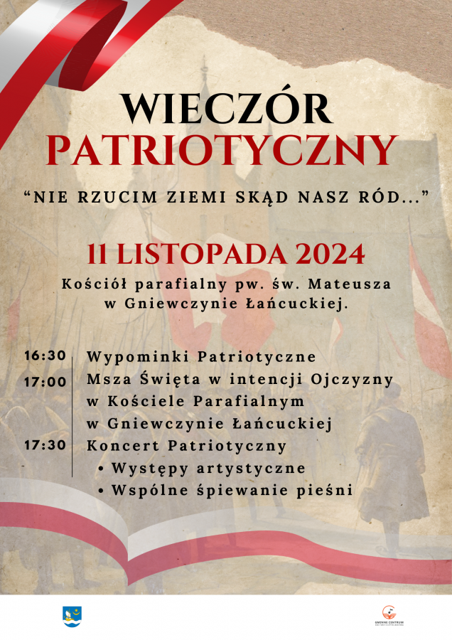 Serdecznie zapraszamy wszystkich parafian i gości do wspólnego uczczenia Narodowego Święta Niepodległości podczas Wieczoru Patriotycznego, który odbędzie się w naszym kościele parafialnym pw. św. Mateusza w Gniewczynie Łańcuckiej...