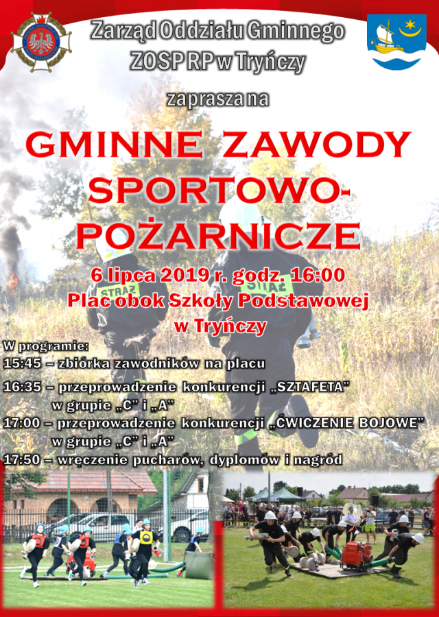 Obrazek Serdecznie zapraszamy na Gminne Zawody Sportowo-Pożarnicze w sobotę 6 lipca o go na placu obok Szkoły Podstawowej w Tryńczy.. więcej
