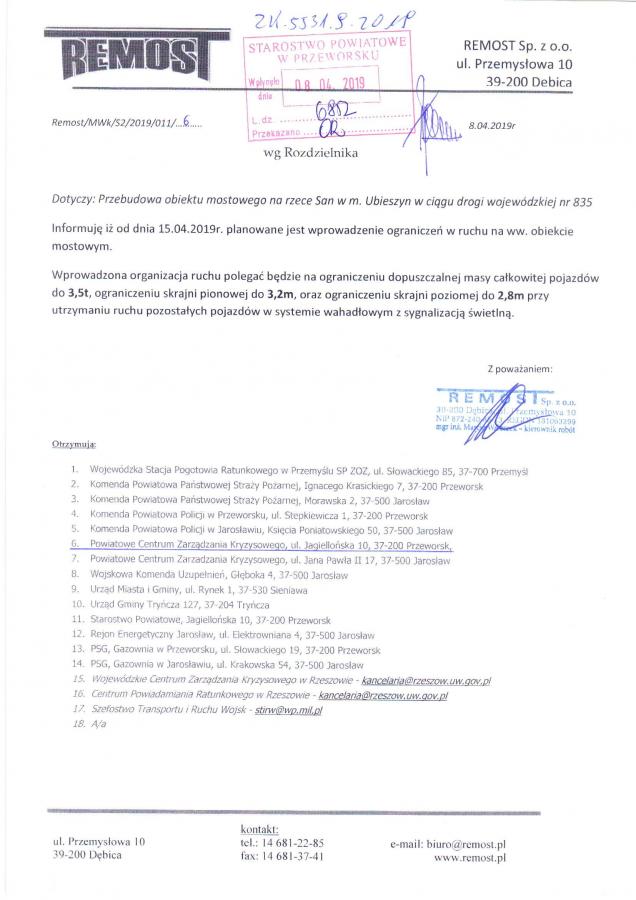 Obrazek Przebudowa obiektu mostowego na rzece San w miejscowości Ubieszyn w ciągu drogi wojewódzkiej nr 835 więcej