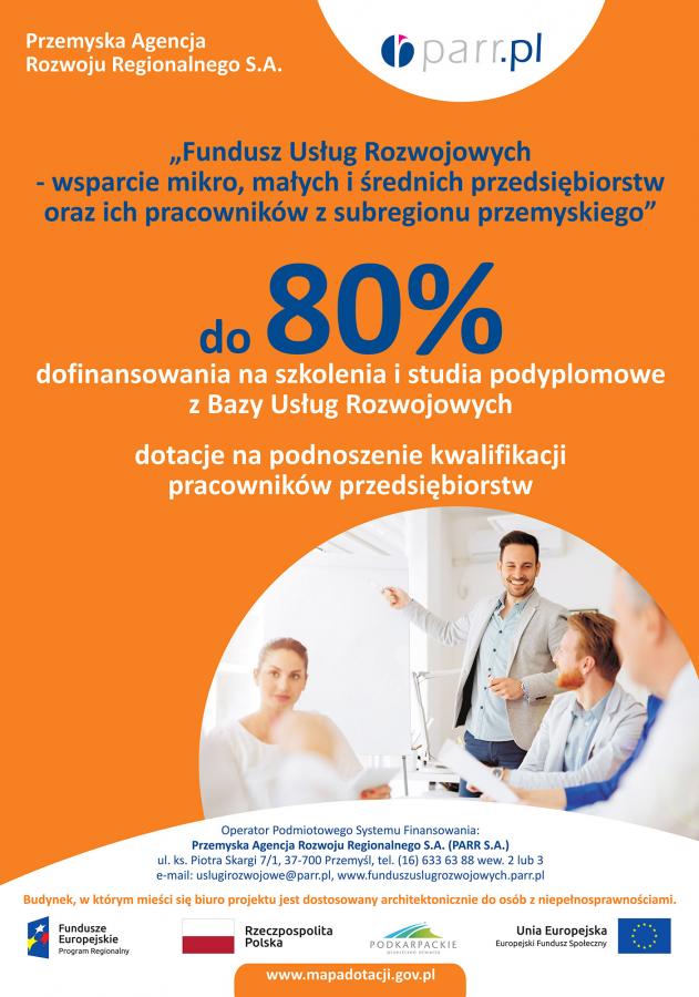 IV naboru formularzy zgłoszeniowych w ramach projektu „Fundusz Usług Rozwojowych - wsparcie mikro, małych i średnich przedsiębiorstw oraz ich pracowników z subregionu przemyskiego”, realizowanego na podstawie umowy zawartej z Wojewódzkim Urzędem Pracy w Rzeszowie.