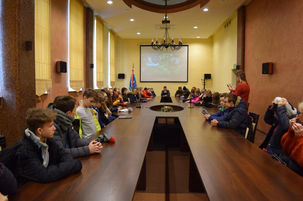 Obrazek 11 stycznia br. Urząd Gminy w Tryńczy odwiedzili uczniowie z klas 8 ze Szkoły Podstawowej w Gniewczynie Łańcuckiej wraz z nauczycielami. Na sali konferencyjnej Sekretarz Gminy Magdalena Rachfał zapoznała uczniów ze strukturą i zadaniami, jakimi realizuje Urząd Gminy w Tryńczy oraz jego jednostki organizacyjne.