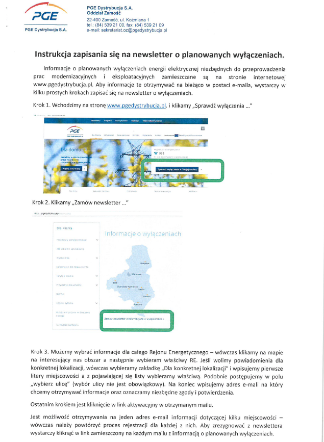 Obrazek Informacje o planowanych wyłączeniach energii elektrycznej niezbędnych do przeprowadzenia prac modernizacyjnych więcej