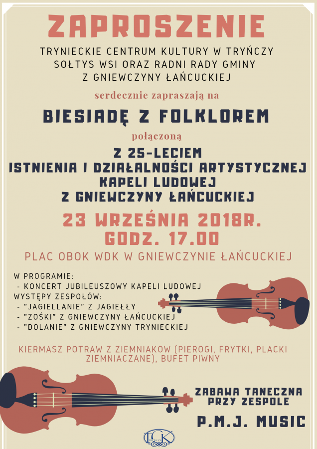 Obrazek Zapraszamy na Biesiadę z Folklorem połączoną z 25-leciem istnienia i działalności artystycznej Kapeli Ludowej z Gniewczyny Łańcuckiej więcej