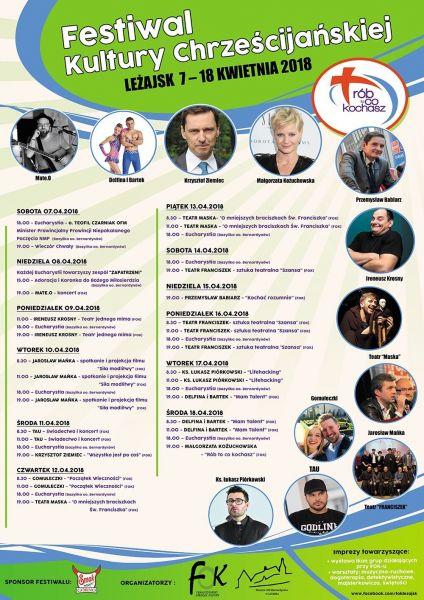 W dniach 7-18 kwietnia br. zapraszamy do Leżajska na Festiwal Kultury Chrześcijańskiej