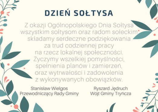 Z okazji ogólnopolskiego Dnia Sołtysa składamy serdeczne podziękowania
